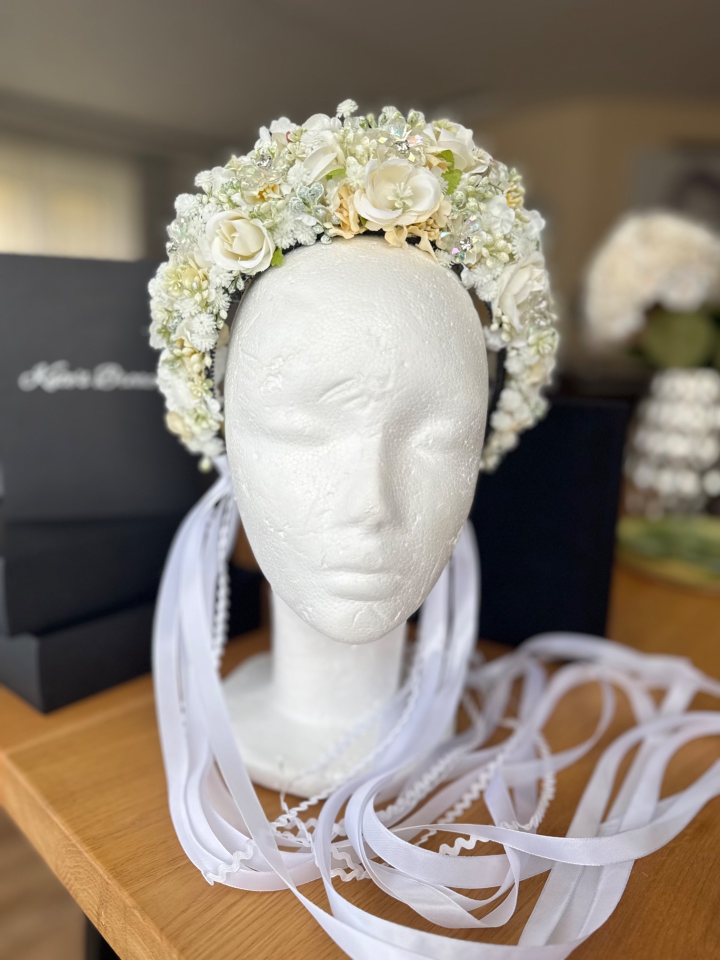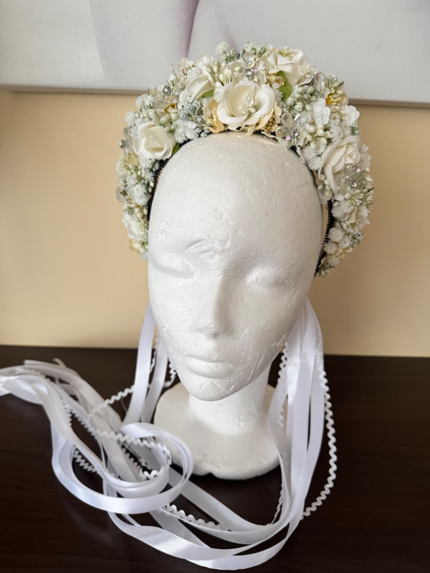 Ručne robená, zdobená svadobná parta.