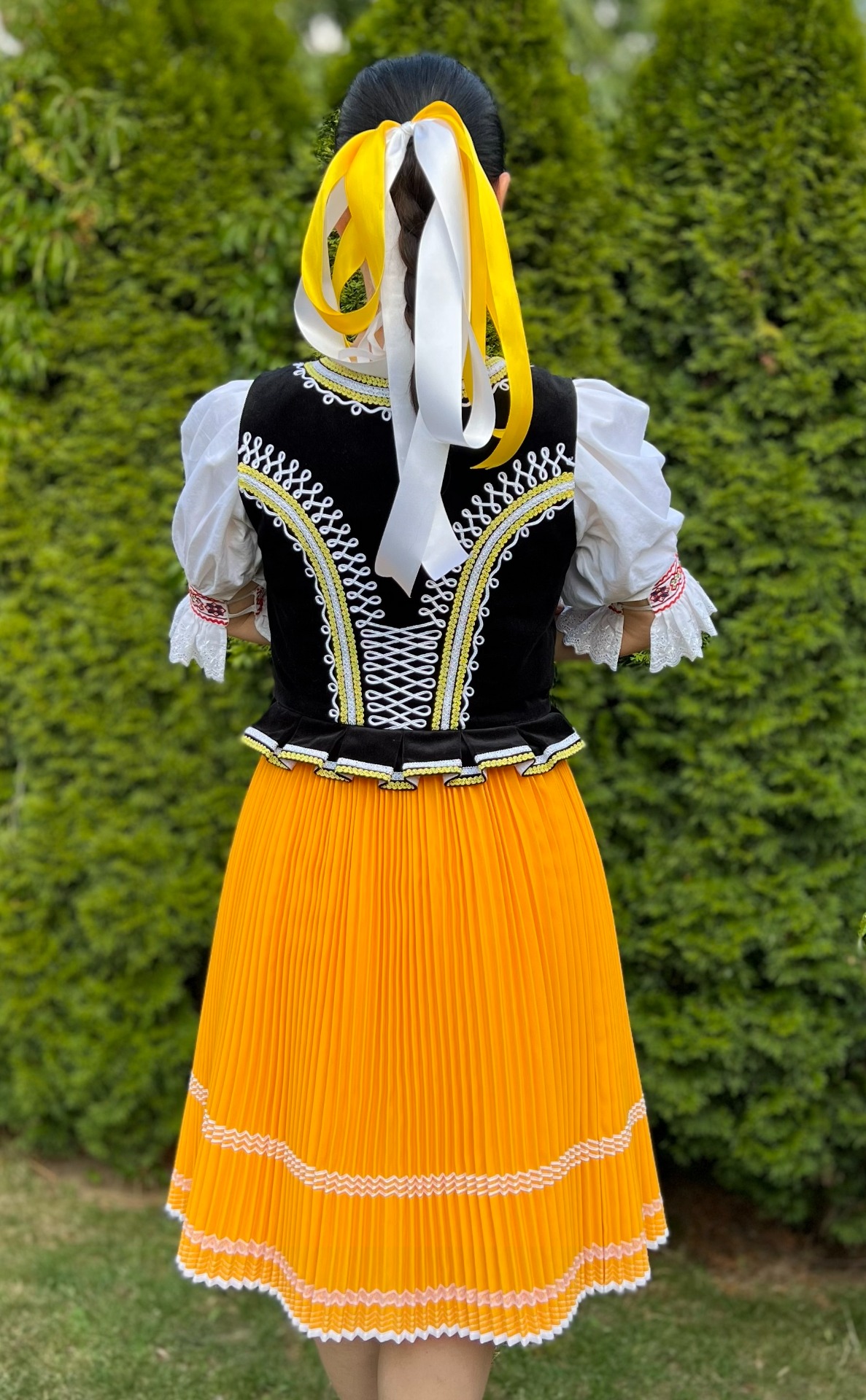 cena je za zapožičanie kompletného kroja: sukňa, spodnica, košeľa, lajblik (vesta), zástera, korálky na krk, stuhy do vlasov, čepiec, podľa záujmu čierne aj kožené folklórne topánky.